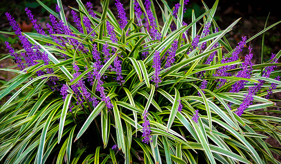 Variegated Liriope is a very versatile perennial growing in sun or shade. It has a round mounded habit growing to 18" wide and 24" wide. It has lavender blooms in July. Plant in sun for best flowering results.